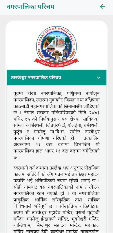 - - - - - - - - - - - - - ویژگی های برنامه شهرداری Tarakeshwor - - - - - - - - - - - - - -