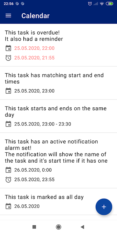 Create tasks with or without dates, set reminders and move tasks between different categories.