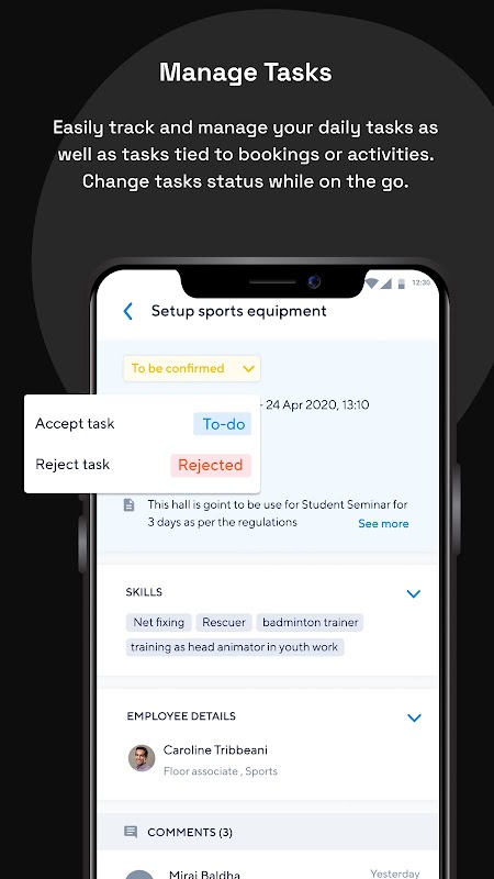 وظایف خود را مدیریت کنید، با رزروها مشورت کنید و حضور را با TaskFlow علامت بزنید.