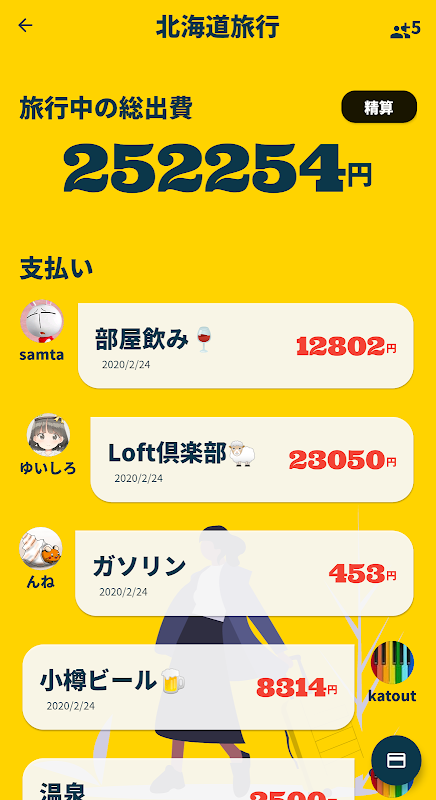 در این Tatekan اگر اطلاعاتی را که هنگام مسافرت پرداخت کرده اید وارد کنید ، ابر اطلاعات پول را بین دوستان به اشتراک می گذارد و مانند Line نمایش داده می شود!
