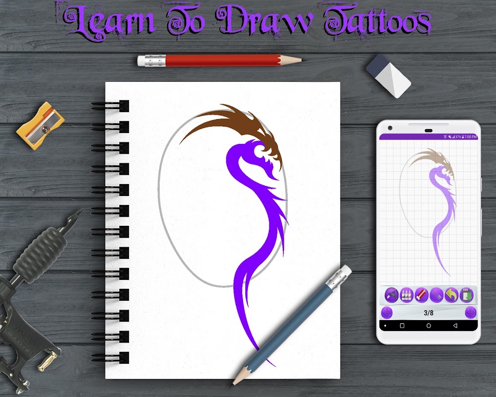 آیا به تاتو علاقه مند هستید؟ آیا تبدیل شدن به یک استاد تاتو یا Tattoo Artist رویای حرفه ای شماست؟ --- اگر جواب بله است ، این برنامه Tattoo Tutorials یک انتخاب قطعی برای شماست. در مراحل ساده به شما امکان می دهد تا نقاشی های خارق العاده ای انجام دهید ، فقط یک کاغذ و یک مداد بگیرید ، خال کوبی را که دوست دارید انتخاب کنید و دستورالعمل های مرحله به مرحله را دنبال کنید. استفاده از آن بسیار آسان است. هر نقاشی تاتو به 5 یا 12 مرحله تقسیم می شود و به راحتی می توان آنرا دنبال کرد.