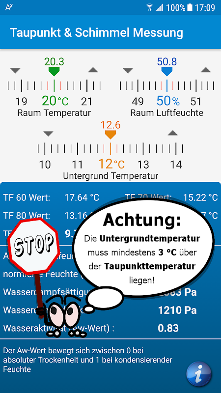 Mir dieser App, können Sie den Taupunkt und die Schimmelgrenze ausrechnen.