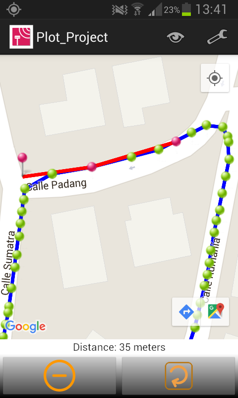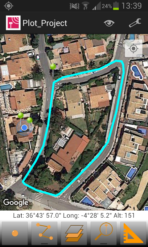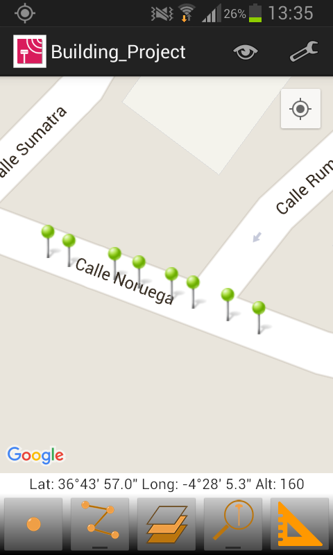 The application allows data collection of single points, whose coordinates are got from the GPS, showing the estimated precision by a circle, as is usual in location-based programs.