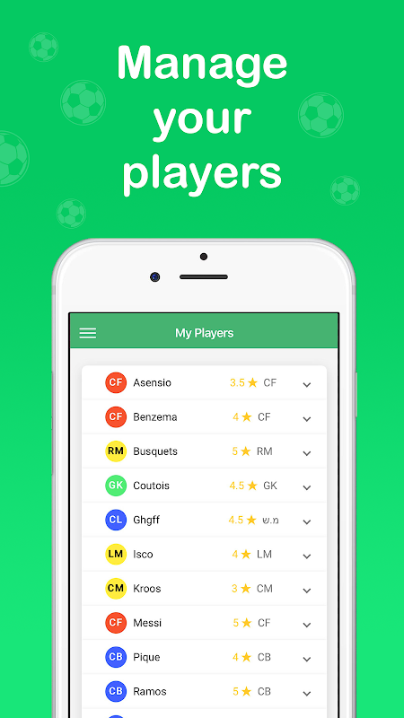 • به بازیکنان 5 تا 1 ستاره امتیاز دهید تا بهترین تیم های تصادفی و برابر را بدست آورید