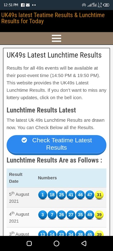 APKPure از تأیید امضای نرمافزار برای اطمینان از دانلودهای بدون ویروس APK Teatime Results Uk49s استفاده میکند.