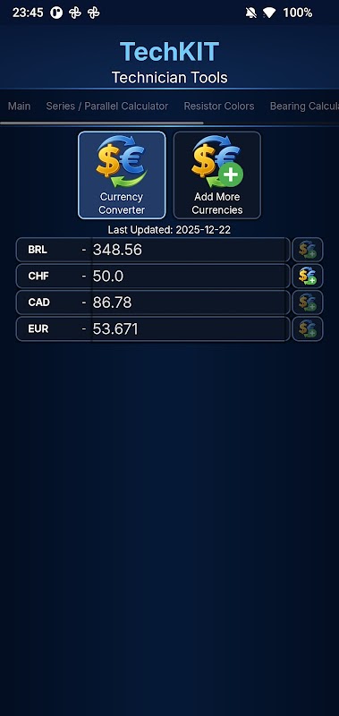 TechKit یک جعبه ابزار قدرتمند و کاربردی است که برای تکنسینها، برقکاران، مهندسان و علاقهمندان به الکترونیک ساخته شده است. این برنامه، ابزارهای ضروری محاسبه و مرجع را در یک برنامه ساده و آسان برای استفاده ترکیب میکند که برای کار سریع هم در محل کار و هم در محل کار طراحی شده است.