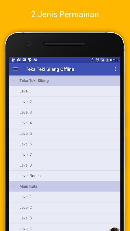 Permainan Teka Teki Silang yang terdiri dari 15 level & bonus permainan tebak kata. Format dari game TTS ini tidak seperti game Teka Teki Silang yang sudah ada sebelumnya di Play Store
