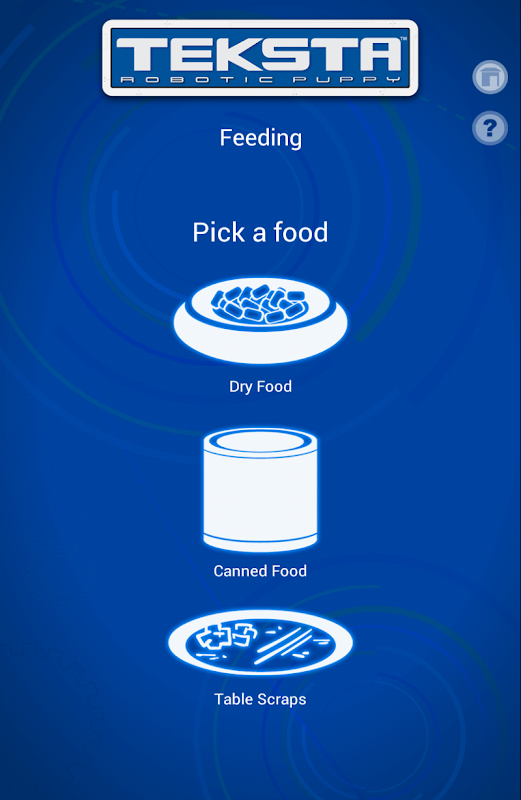 TEKNO/TEKSTA is a real robot who responds to your voice, actions, motions, lights, sounds and even this app. Thanks to his artificial intelligence program, the puppy will bark, cry, whine and change his eye patterns in ways to show how he's feeling.