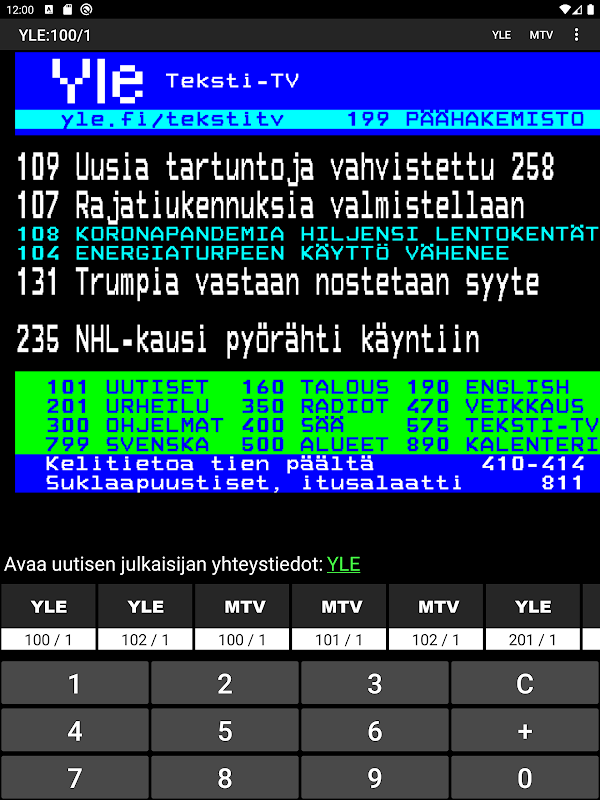 YLE و تامین تله تکست MTV را منظمی در یک دیدگاه.