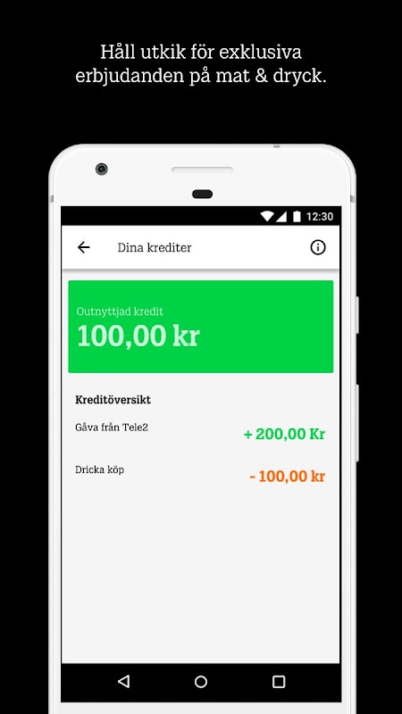 * Kredit/Mitt konto – Håll utkik i appen efter erbjudanden som du kan använda på arenan.