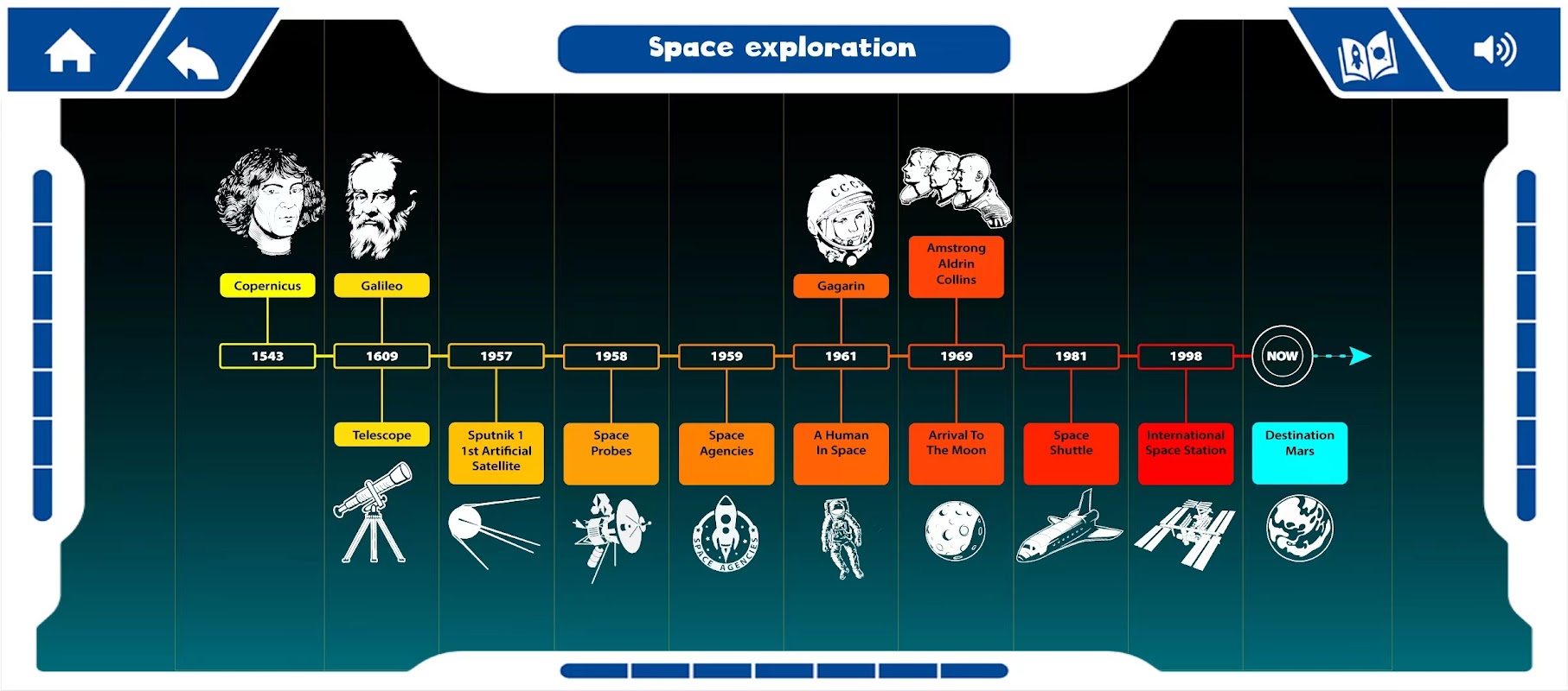 در دایره المعارف فضایی ما می توانید کیهان، منظومه شمسی و جدول زمانی را با مهم ترین لحظات تاریخ فضا کاوش کنید. همچنین می توانید دانش خود را در مورد علم گسترش دهید و مهارت های STEM خود را توسعه دهید.