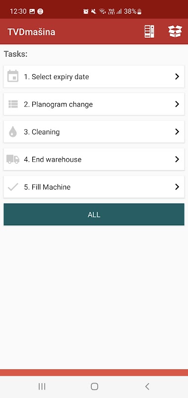 BOTTLER می شود فهرست خود را از ماشین های با اطلاعات حساس - وضعیت دستگاه های حافظه، آدرس، نوع، فاصله کنونی از دستگاه های سکه و اشغال محصولات / مواد. وارد در هر شیار است با اسکن کد QR را تایید کرد.
