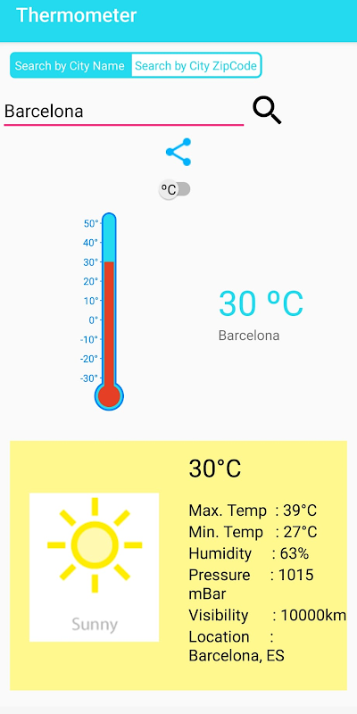 این برنامه دماسنج مفید فوراً به شما اطلاع می دهد. خیلی ساده کار می کند، شما مکان را وارد می کنید و اپلیکیشن دماسنج بلافاصله دمای بیرونی مکان وارد شده شما را نشان می دهد. شما همچنین حداکثر و حداقل دما، رطوبت را دریافت می کنید