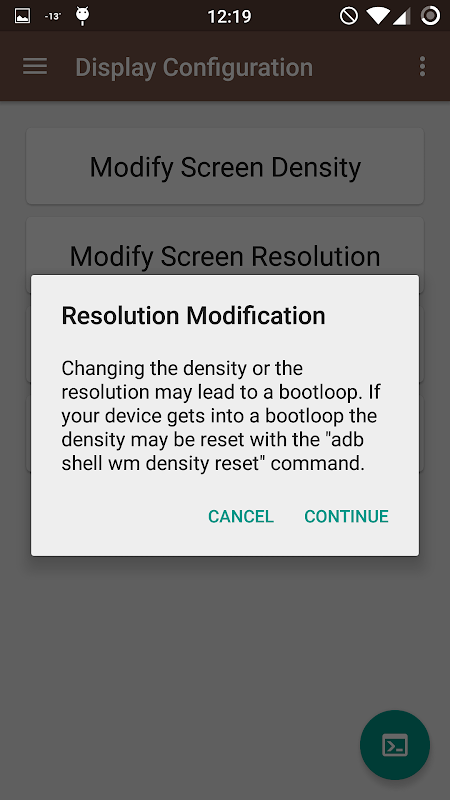 اگر شما را به یک bootloop به دلیل تراکم تغییر و یا وضوح دریافت کنید و سپس شما ممکن است از دستور "بانک انکشاف آسیایی پوسته WM تراکم تنظیم مجدد" برای تنظیم مجدد تراکم و "بانک انکشاف آسیایی WM پوسته اندازه تنظیم مجدد" برای تنظیم مجدد قطعنامه استفاده کنید. تا زمانی که اشکال زدایی USB است و دستگاه شما را به یک کامپیوتر متصل با بانک انکشاف آسیایی نصب این دستورات باید کار در حالی که دستگاه bootlooping.