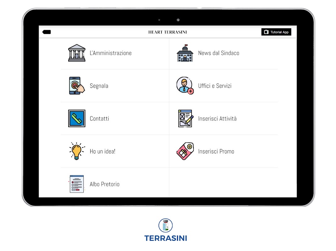 تمامی محتویات داخل اپلیکیشن مربوط به شهرداری Terrasini مجاز بوده و از سایت سازمانی آمده است: https://www.comune.terrasini.pa.it/