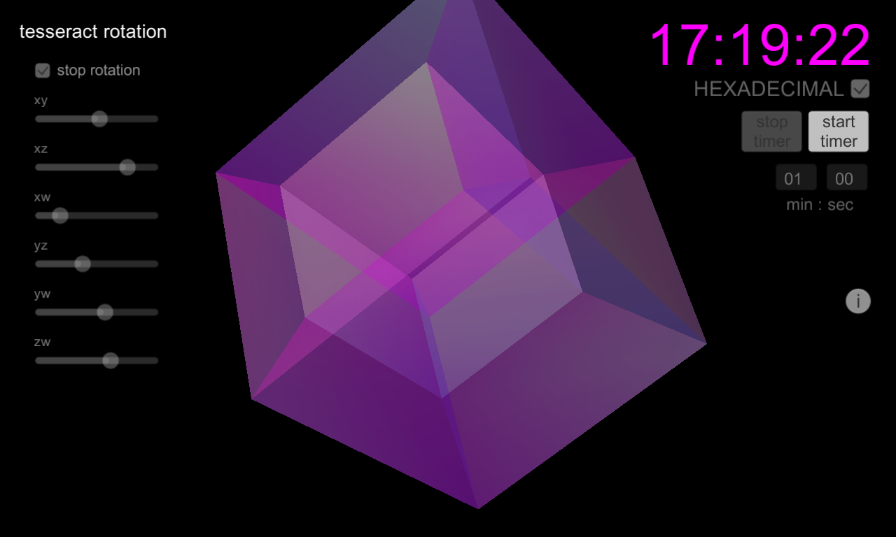 این انیمیشن تسرکت 4D مکعب است. ساعت hexadicemal + تایمر نمایش داده می شود