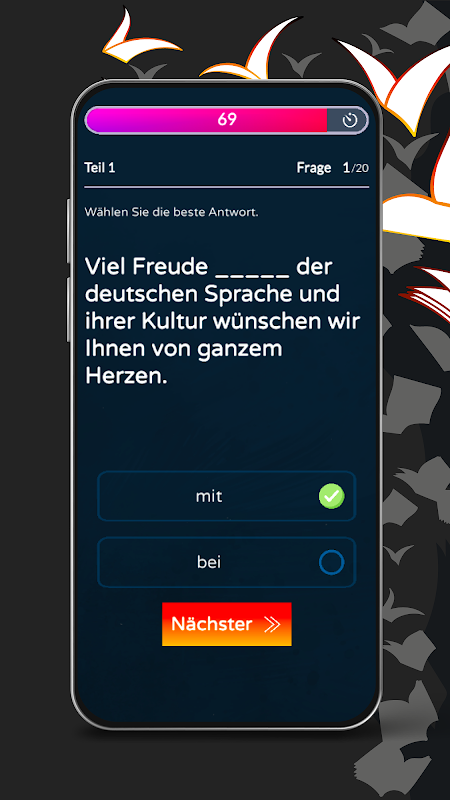 آزمون و پرسشنامه بهترین روش برای آزمون سطح خود در گرامر ، ارتوپراف ، درک مطلب به زبان آلمانی ، با تعداد زیادی سوال مختلف در مورد دانش ، برای همه سطوح با چند گزینه است.