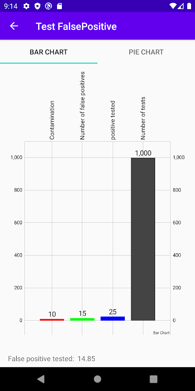 این برنامه میزان مثبت کاذب آزمون ها را محاسبه می کند. میزان مثبت کاذب یک آزمون به این معنی است که همه آزمون های با نتیجه مثبت در واقع در یک سری آزمون مثبت نیستند ، اما به دلیل میزان خطای آزمون ، درجه بندی آنها اشتباه است.