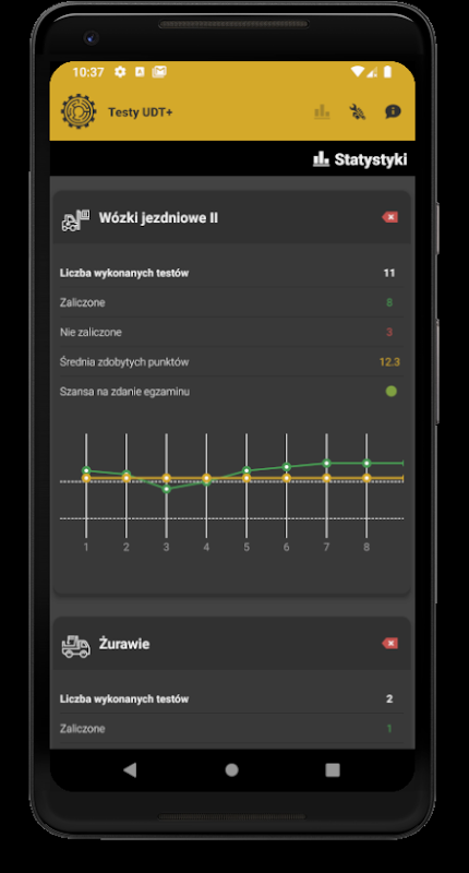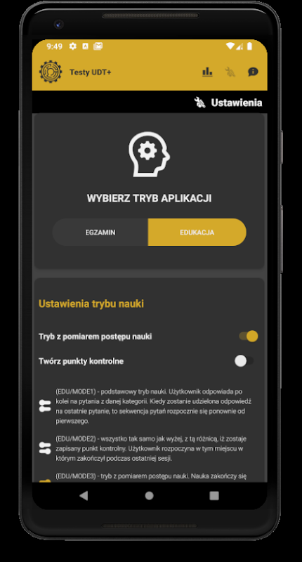 برنامه UDT Tests عمدتاً برای افرادی در نظر گرفته شده است که صلاحیت های دفتر بازرسی فنی برای جابجایی دستگاه ها را کسب می کنند. آزمون های نظری ارائه شده در اپلیکیشن مطابق با قوانین آزمون نظری دفتر بازرسی فنی تدوین شده است.