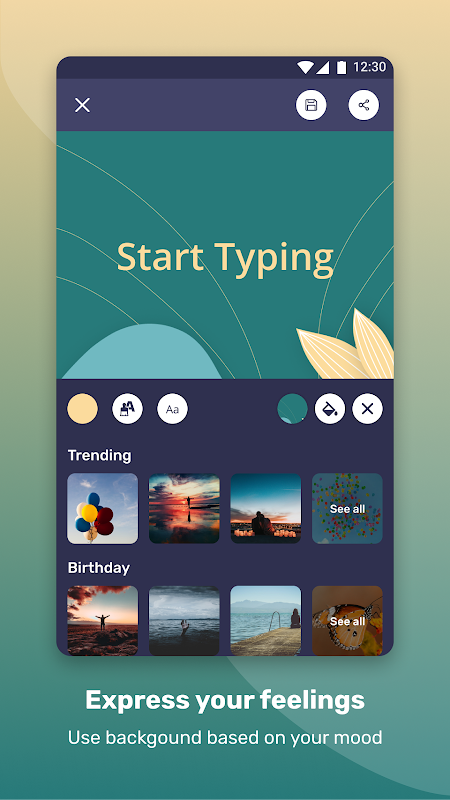 شما یک زمینه مناسب برای بیان پیام خود به روش دیگری دریافت خواهید کرد. پس زمینه مورد نظر خود را بر اساس شرایط و شرایط انتخاب کنید و پیامی تایپ کنید و سپس به سرعت با سیستم عامل های محبوب اجتماعی به اشتراک بگذارید یا برای نظرات در فیس بوک در گالری خود بارگیری کنید. فوق العاده آسان و سریعتر برای به اشتراک گذاری.