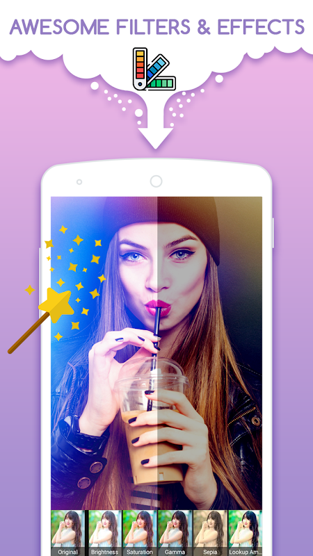 ✏ Awsome Photo Editor: use great photo filters or professional photo editing tools like crop, rotate or flip to edit your photo before write on pictures
