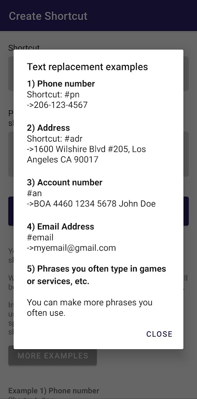 ✔ عباراتی که اغلب در بازی ها یا خدمات تایپ می کنید و غیره.