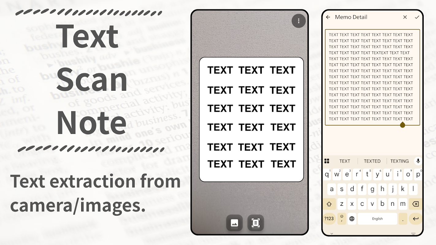 "Text Scan Note" یک برنامه یادداشت برداری OCR نسل بعدی است که فوراً متن را از طریق اسکن دوربین دیجیتالی می کند و آن را به عنوان یادداشت قابل ویرایش ذخیره می کند.