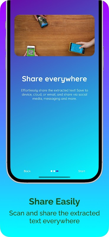 به لطف گزینه های اشتراک گذاری همه کاره برنامه ما، متن استخراج شده خود را بدون زحمت با دوستان، همکاران یا هرکسی که می خواهید به اشتراک بگذارید. با چند ضربه، می توانید به راحتی متن را از طریق برنامه های پیام رسانی، ایمیل، رسانه های اجتماعی یا هر برنامه سازگار دیگری که روی دستگاه خود نصب شده است به اشتراک بگذارید. به طور یکپارچه در پروژه ها همکاری کنید، بهره وری را افزایش دهید، یا به سادگی قطعات جذاب را با عزیزان خود به اشتراک بگذارید.