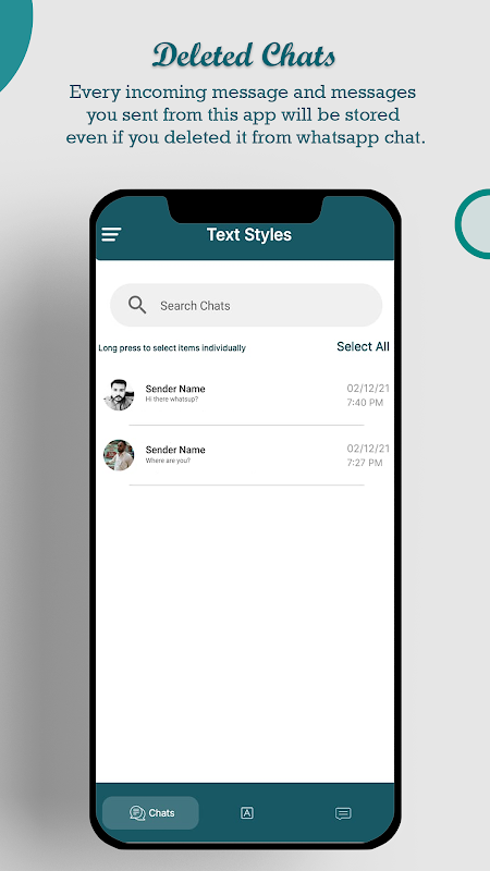 This app also comes with an important and exciting feature of hidden chats or no last seen chats.You can maintain your privacy and watch replies text directly from this app and your sender will never know that you already have read it. No last seen feature is important as you can read chats whenever you want without bother of removing the internet connection or activating offline mode anymore. This app will backup your chats and can be recovered in case you have accidently deleted chat and provide you chat recovery feature. You can see last message time and date from this app. Your all media and files will be backup on your device and will be saved in case you mistakenly deleted chat and media files our chat recovery feature will help to recover message and media files for you. By using this Text Styles App and using chat recovery feature you can create backup of chat messages, restore photos and media files. You can restore deleted messages and media or undelete messages that had been deleted or unsend by the sender.