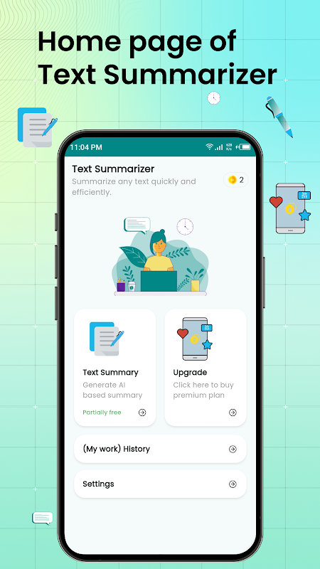 برنامه Text Summary به کاربر تلفن اجازه می دهد تا به سرعت ایده های ضروری را در اطلاعاتی که قرار بود در یک صفحه نمایش بزرگتر خوانده شود، درک کند. این یک توضیح مختصر ارائه می دهد که خواندن آن ساده است و برای تلفن های هوشمند و تبلت ها سازگار است.