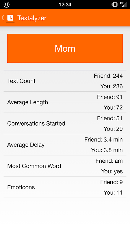 • This app doesn't harvest your information or texts. All calculations are done on your phone. This is demonstrated through the permissions which don't utilize an internet connection. In addition, the stats are not stored on your phone, they are recalculated each time.