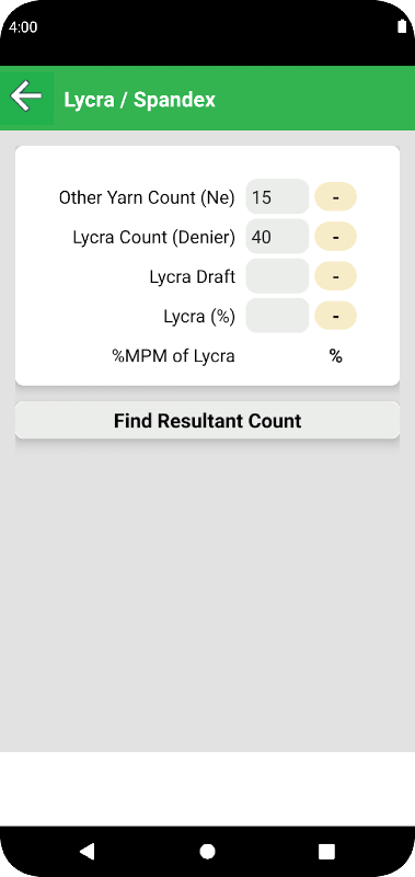 Spandex/Lycra Draft: نسبت پیش نویس و %MPM را برای ترکیبات Lycra محاسبه کنید.
