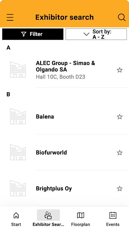 فهرست غرفه داران: با استفاده از فیلترها و توابع مرتب سازی، تولید کنندگان، تامین کنندگان و محصولات خاص را جستجو کنید. مشخصات غرفه داران، اطلاعات تماس و شماره غرفه ها را مشاهده کنید. به راحتی یادداشت ها و عکس ها را در نمایه خود ذخیره کنید تا غرفه داران برجسته، مکالمات مهم یا هر چیزی که می خواهید از نمایشگاه به خاطر بسپارید را پیگیری کنید.