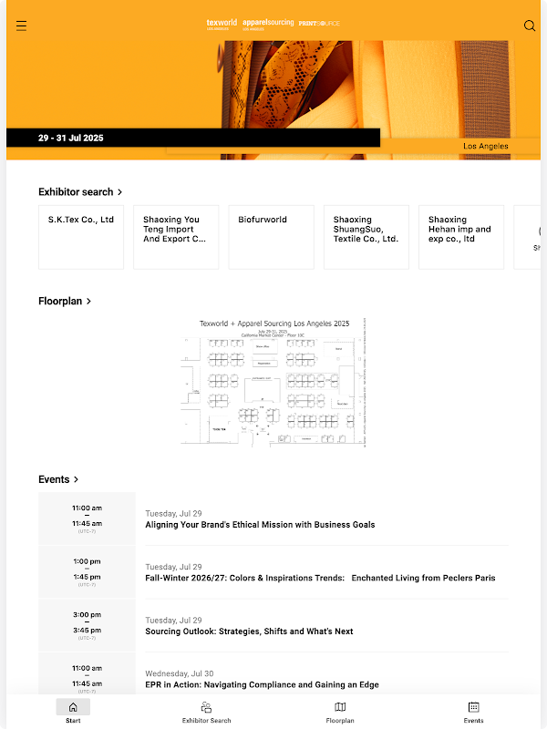 Navigator-App راهنمای رسمی بازدیدکنندگان Texworld Los Angeles و Apparel Sourcing Los Angeles است که توسط Messe Frankfurt سازماندهی شده است.