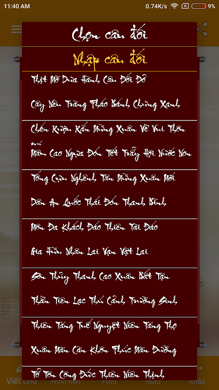 - Chọn hình nền Tết, hình nền xuân, hình nền mang phong cách thầy đồ cho ứng dụng.