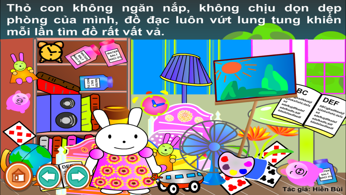 Thỏ con không ngăn nắp, đồ đạc vất rất lộn xộn trong phòng.