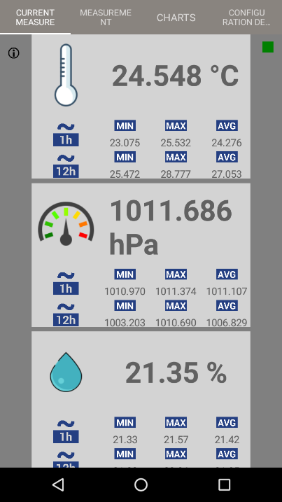 The app allows easy configuration of the THBR module, access to current and archival readings, and viewing them in form of detailed charts.