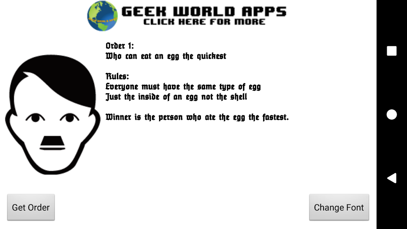 If you are looking for something new and different to play at a party this is perfect! If it gets over 100 downloads we will look at adding more tasks to make sure the app is always fresh for players! There are 50 orders at the moment in the app and we recommend that you play between 4 to 8 per game!