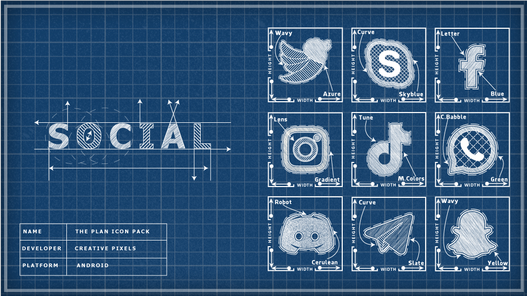 Reveal the basic structure of app Icons with The Plan a fine line Icon Pack.