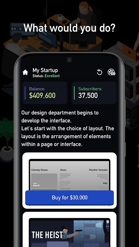 "راه اندازی" یک بازی شبیه ساز هیجان انگیز جدید است که به شما امکان می دهد سر یک استارتاپ بزرگ و امیدوار کننده باشید.