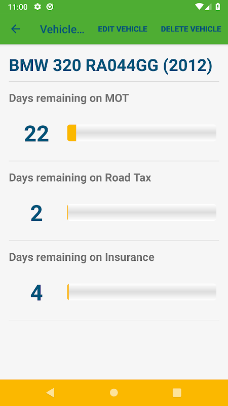 جزئیات وسیله نقلیه خود را وارد کنید تا زمانی که موعد MOT، بیمه و مالیات شما باید یادآوری شود. در یک نگاه ببینید چقدر تا پایان این تاریخ ها باقی مانده است. هر تعداد وسیله نقلیه را که دوست دارید ذخیره کنید.