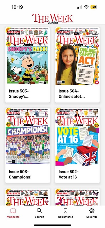 برنامه Week Junior شامل تمام مقالات شگفتانگیز مجله چاپی و همچنین پازلها و ویدیوهای تعاملی است، در قالبی که خواندن آن در هر جایی آسان است و با تمام اعضای خانواده به اشتراک گذاشته میشود. همچنین میتوانید به شمارههای گذشته و آخرین شماره قبل از اینکه هر هفته وارد فروشگاهها شود، دسترسی داشته باشید.
