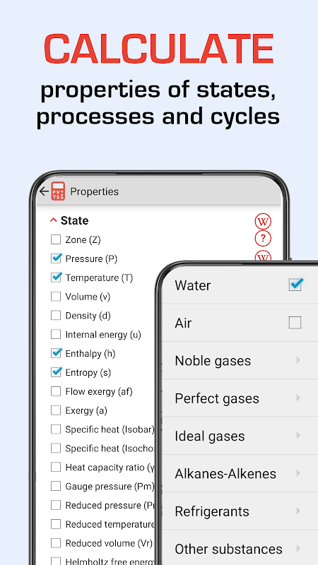 - محاسبه سریع جداول بخار برای آب، هوا، گازهای ایده آل، مبردها و سایر مواد.