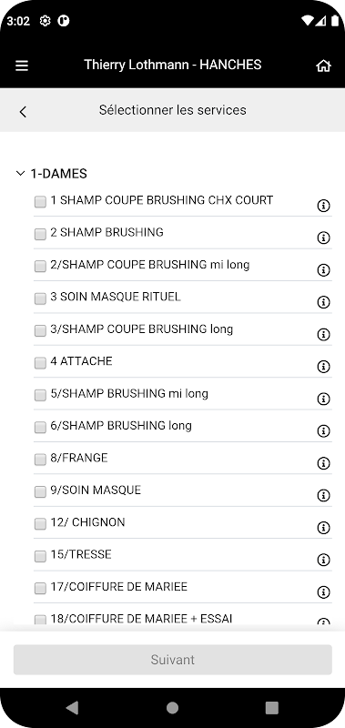 ایجاد قرار ملاقات، برنامه خود را انتخاب کنید، آرایشگاه مورد علاقه خود را انتخاب کنید.