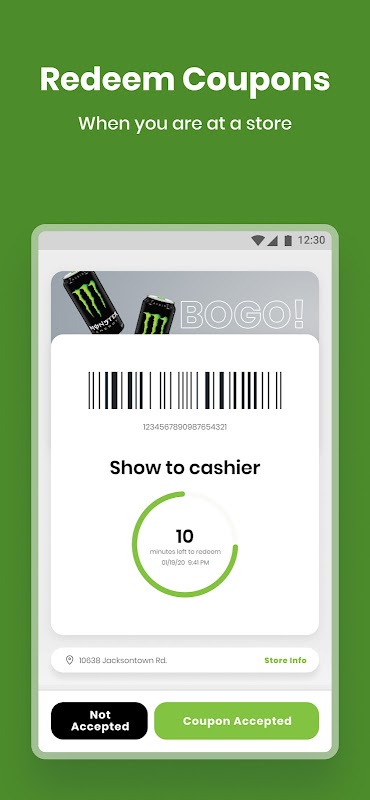 به سادگی روی دکمه بازخرید ضربه بزنید و گوشی خود را هنگام خرید نشان دهید تا کوپن های خود را بازخرید کنید.
