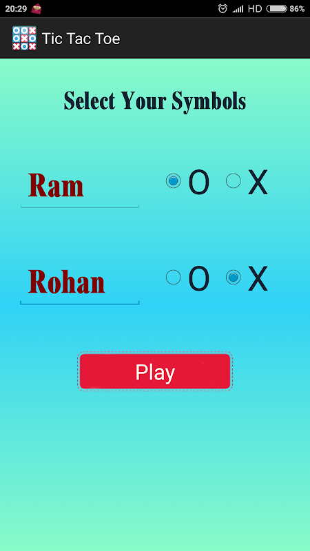 Single Player / Multi Player Tic Tac Toe Android Game !! No need of any person !! You can play tic tac toe with android device as your opponent.