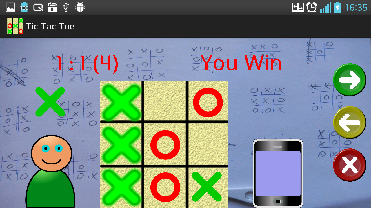 Tic-tac-toe (Noughts and crosses, Xs and Os) is a simple logical play for two players.