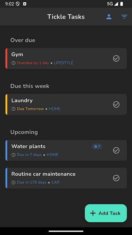 برنامه های سنتی شکست می خورند زیرا زندگی قابل پیش بینی نیست. برنامههای «شناور» انقلابی Tickle با شما سازگار است - یک کار را دیر انجام دهید؟ از امروز به طور خودکار بازنشانی میشود و حرکت شما را بدون استرس زنده نگه میدارد. ایده آل برای تسلط بر روال هایی مانند: آبیاری گیاهان هر 5 تا 7 روز (شست سبز خود را شکوفا کنید!)