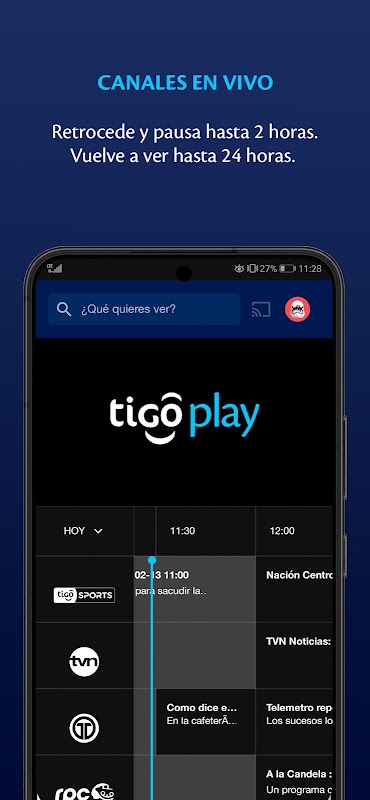 Tigo Play شما را به بهترین برنامه های تلویزیونی محلی و بین المللی نزدیکتر می کند. از بهترین سریالها، فیلمها، برنامههای کودکان، ورزش، اخبار، بهترینهای تولید ملی و خیلی چیزهای دیگر در صورت تقاضا لذت ببرید. این سرویس برای مشتریان فعال تیگو با طرح تلویزیون کابلی رایگان است و برای مشتریان تلویزیون دیجیتال و آنتن ماهواره (از جمله MMDS) در دسترس است. Tigo Play به شما امکان می دهد با وارد کردن نام کاربری Mi Tigo خود از برنامه های مورد علاقه خود از هر کجا لذت ببرید.