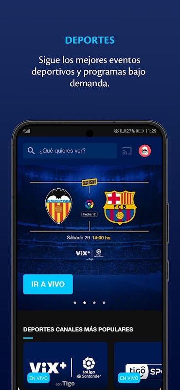 اگر دور از خانه هستید و زمان بازی یا نمایش مورد علاقه شما فرا رسیده است، نگران نباشید. بهترین لیگ ها و مسابقات جهان را به صورت زنده تماشا کنید: لیگ قهرمانان اروپا، لیگ اروپا، MLB، NBA، NFL، لالیگا، سری A، لیگ 1، LPF، بیسبال ملی، جام طلا، کوپا آمریکا، جام جهانی و بسیاری موارد دیگر.